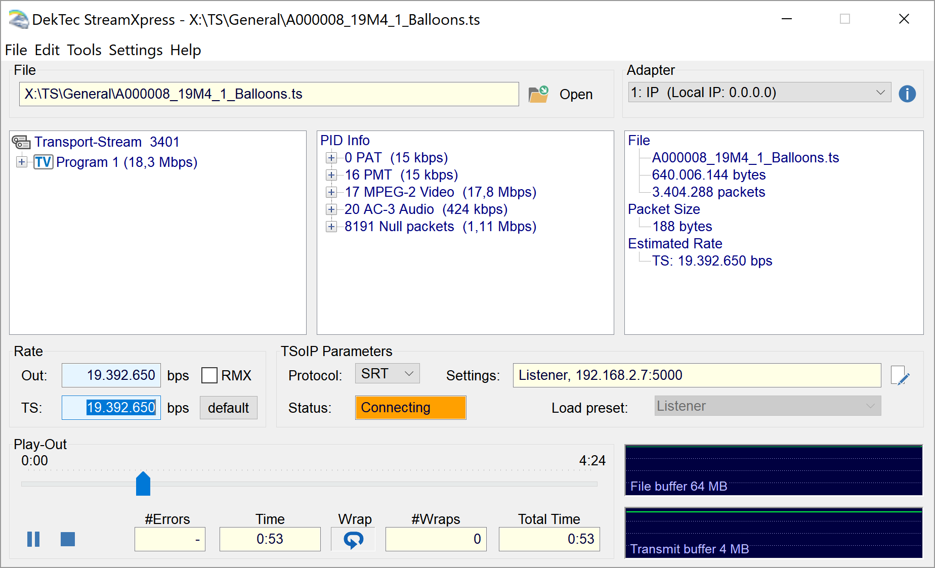 目前对SRT的支持使StreamXpress用户能够从您的本地网络适配器上播放SRT流。许多未来的改进计划,如对DekTec设备的SRT支持,播放过程中SRT连接统计的详细信息和可视化,以及对其他协议的支持,如RIST。