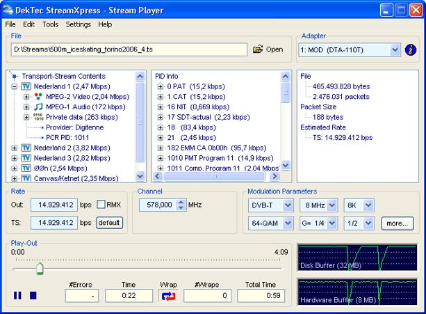 l 可选项:码流文件可通过ASI/TSoIP/RF调制(DVB,ATSC,ISDB)等方式循环播放出来