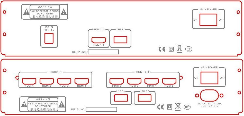 后挡板示意图(上图为1HDMI,下图为8HDMI