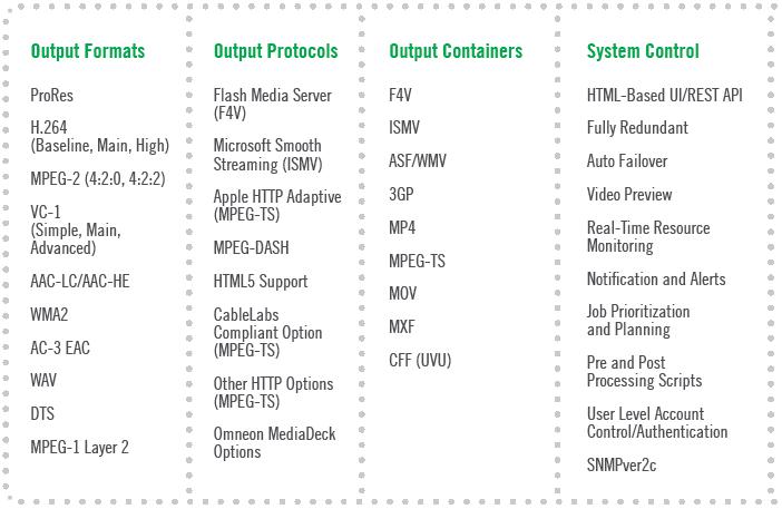 前所未有的转码速度和转码能力。比实时还快的转换和输出12个高清或32个标清视频文件。单个系统同时为多个目标设备建立上百个文件输出格式。