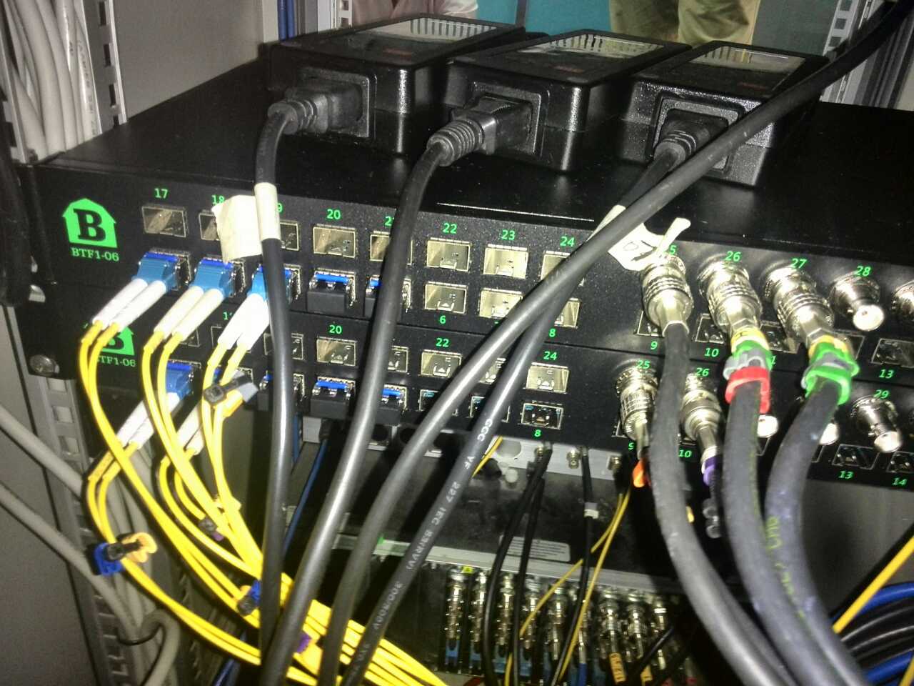 The system is based on a series of Barnfind frames and includes several muxes, many different SFPs for HD, Ethernet, HDMI and other signal formats.