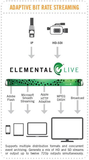 Elemental Live is a video processing system that provides content producers and distributors with video and audio encoding for live streaming to new media platforms.